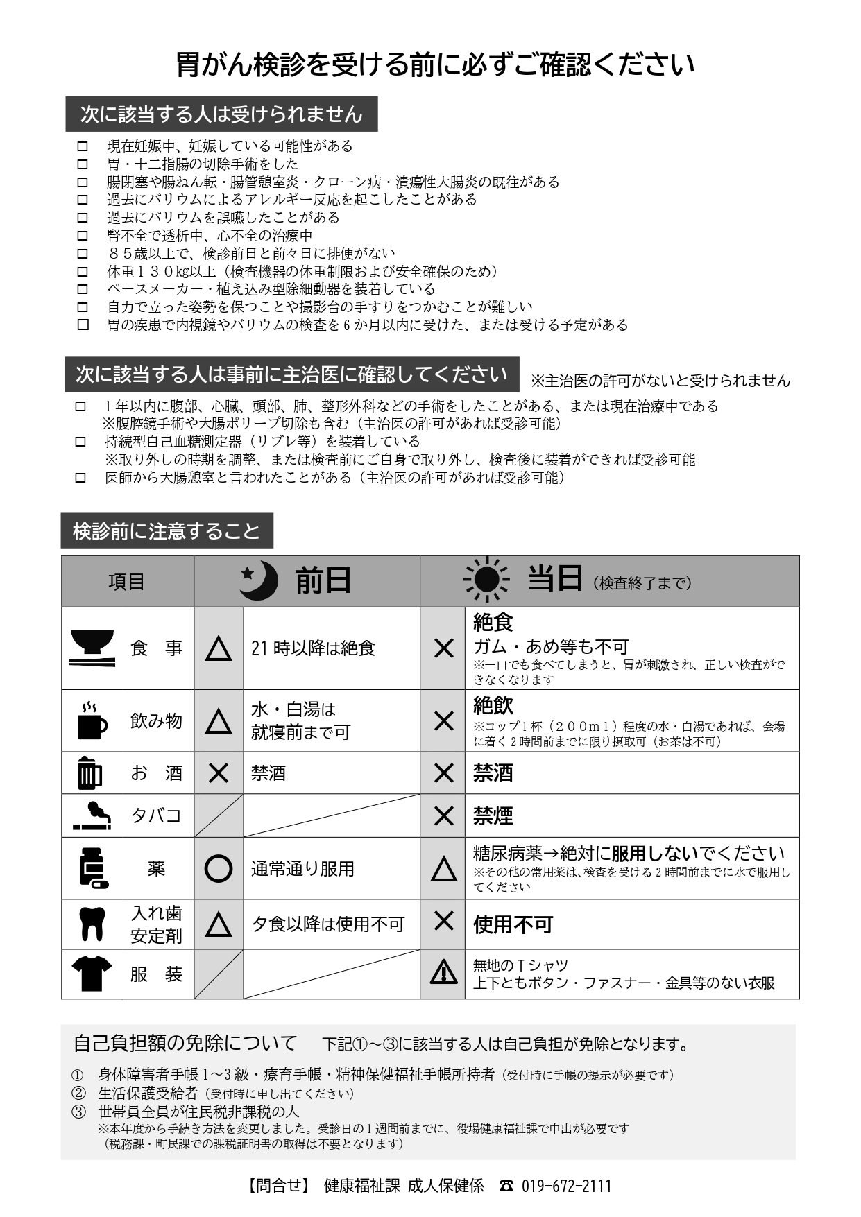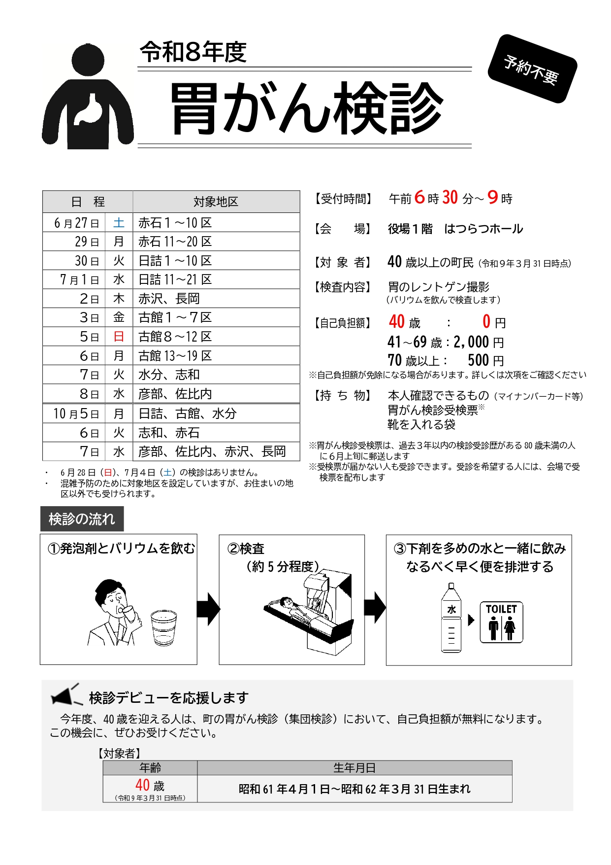 | 注意事項 | 受診には条件があります。 必ず『令和8年度胃がん検診 注意事項』をご確認ください。 |