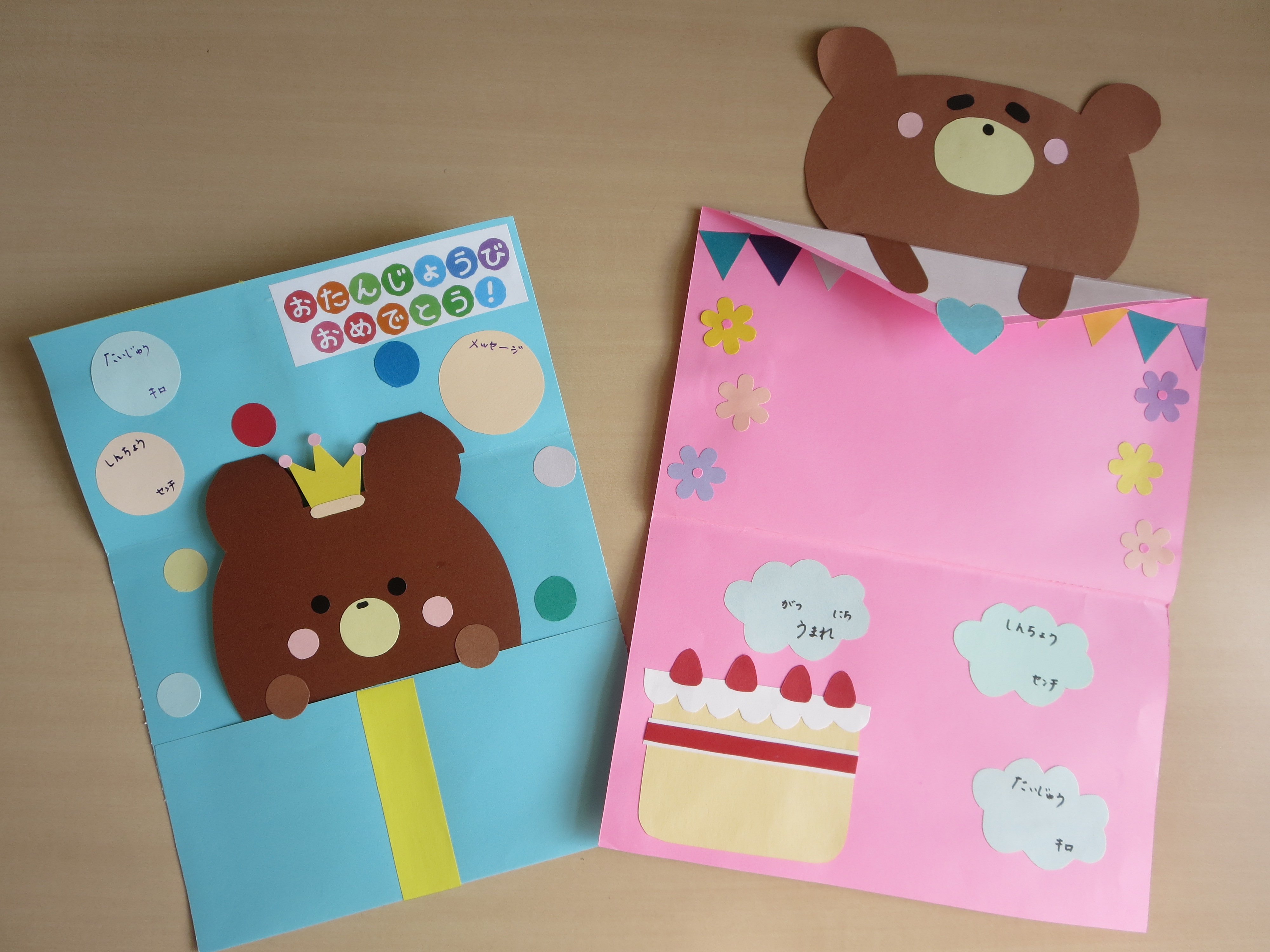誕生月のお友だちにお誕生カードとバースデーシールをプレゼントしています!バースデーシールは誕生月の保護者にもプレゼントしています。ご希望の方はスタッフまでお声がけください♡