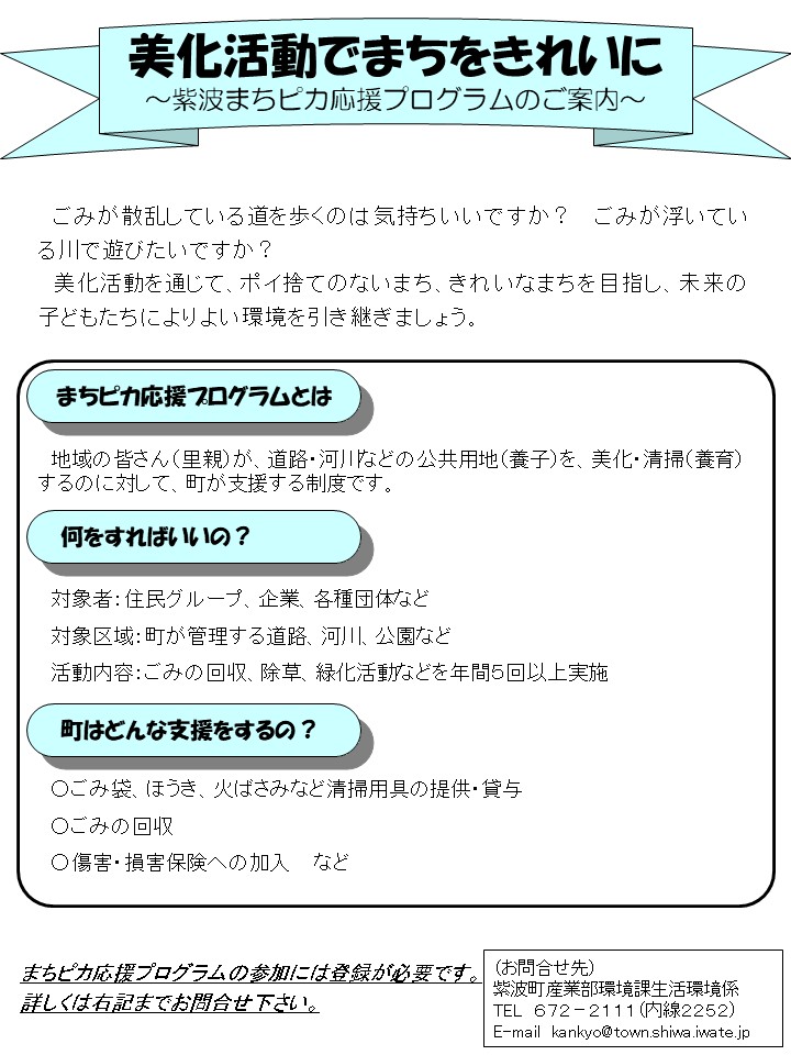 紫波町まちピカ応援プログラム実施要綱 (Wordファイル: 47.5KB)