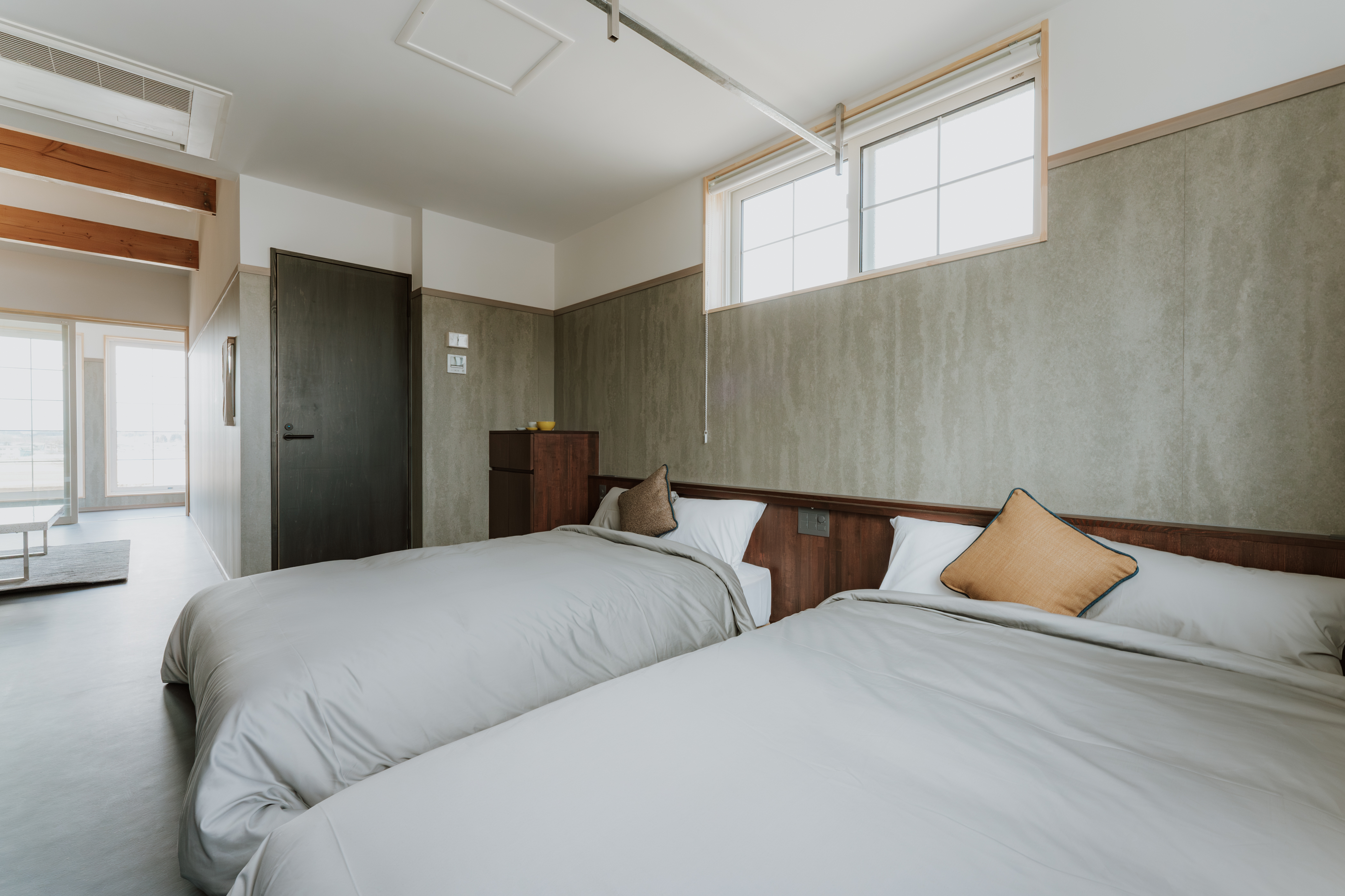 校庭の面影を残す場所に、全6 室だけのちいさなホテル「HOTEL egne(エグネ)」が誕生しました。お部屋からは東根山の美しい緑や、あたたかな夕陽を望むことができます。ラウンジは天然香料だけで仕立てた優しい香りで満たされ、訪れる人をやさしく包み込みます。外から訪れる方々に、長岡の美しい「地の風景」や農業という「生業の風景」の素晴らしさを知っていただくための施設です。